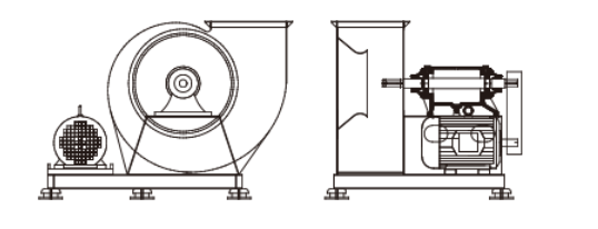 风机可制成右旋和左旋两种形式,从电机端看叶轮旋转方向,按顺时针旋转为右旋,逆时针旋转为左旋。风机的传动方式为A,B,C,D四种,在便于用户安装,调试的基础上,同时可供应用钢结构的整体支架及减震支架。