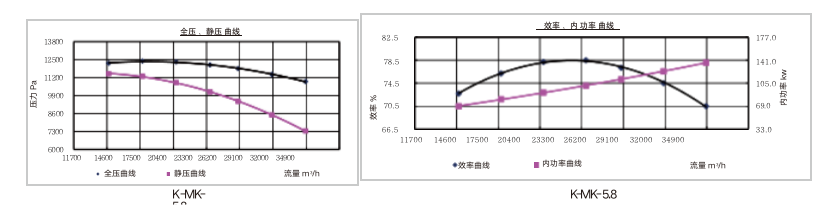 K-MK型离心通风机,一般用于锻冶炉及高压强制通风,并广泛用于物料输送,可 适用于输送空气及无腐蚀,不自燃,不含粘性物质的气体,输送介质的温度一般 不超过80摄氏度,介质中所含的尘土及硬质颗粒物不大于150mg/m3 风机制成两种旋转方向,从电机看风机叶轮旋转方向,若按顺时针旋转为右旋, 按逆时针旋转为左旋。 风机的传动方式为A和D式两种。 此种风机的特点:效率高,噪声较低,性能曲线平坦,高效区宽广。 在便于用户安装,调试的基础上,同时可供应钢结构的整体支架及减震支架。
